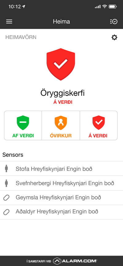 Þú stjórnar öllu í sama appinu hvort sem þú ert með Heimavörn, Sumarhúsavörn eða Fyrirtækjavörn.
