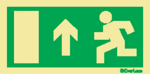 Flóttaleið er um þessa hurð. Merkið er staðsett fyrir ofan hurð. Stærð 300*150 mm. Sjónarhorn á merkið er 90°.