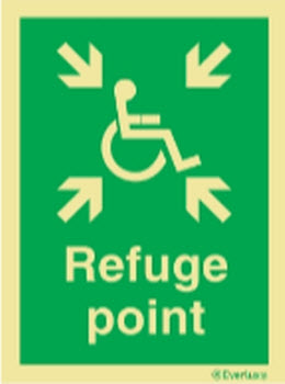Stærð 150*200 mm. Merki sem sýna söfnunarstað eru nauðsynleg þar sem þau veita upplýsingar um hvar viðeigandi söfnunarstaður ef til neyðarrýmingar kemur. Ef einhver er týndur er hægt að skipuleggja leit að þeim sem er týndur. Sjónarhorn á merkið er 90°. Flóttamerki eru í samræmi við Heilbrigðis- og Öryggisreglugerð 1996 og tilskipun Evrópuráðs 92/58/EEC. Nauðsynlegt er að gæta þess að flóttaleiðamerki séu vel sýnileg, og sýni skilmerkilega hver flóttaleiðin er. Þessar upplýsingar eru veittar með því að nota flóttaleiðarskilti meðfram flóttaleið.
